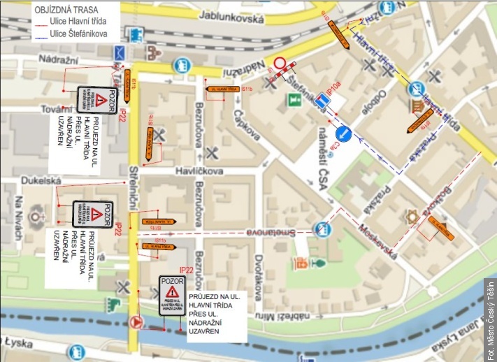 Trasa objazdowa będzie prowadzić ulicami: Strzelnicza, Smetany, Moskiewska, Bożka oraz Główna. Cały objazd będzie oznaczony znakami drogowymi. Jednocześnie nie ma możliwości dojechania do ulicy Štefánika z ulicy Dworcowej. Na ulicę tę można wjechać jedynie z rynku.