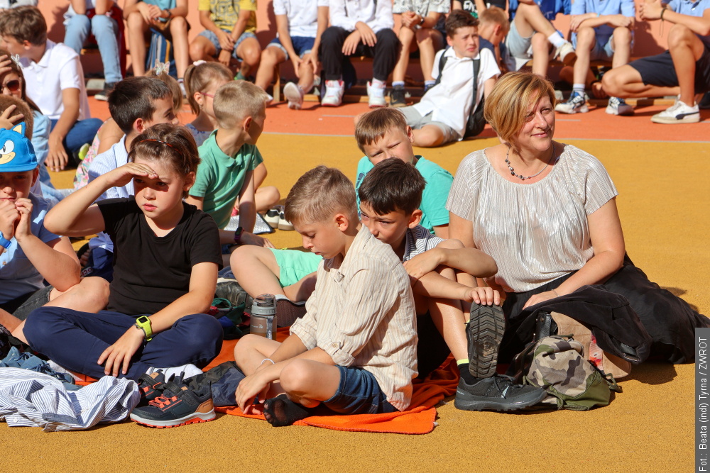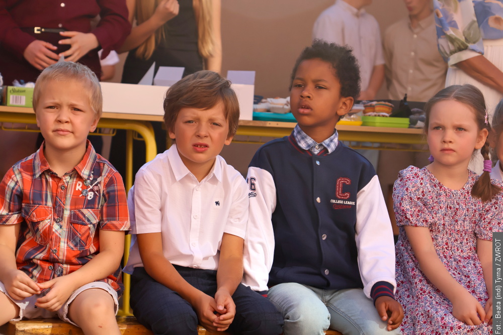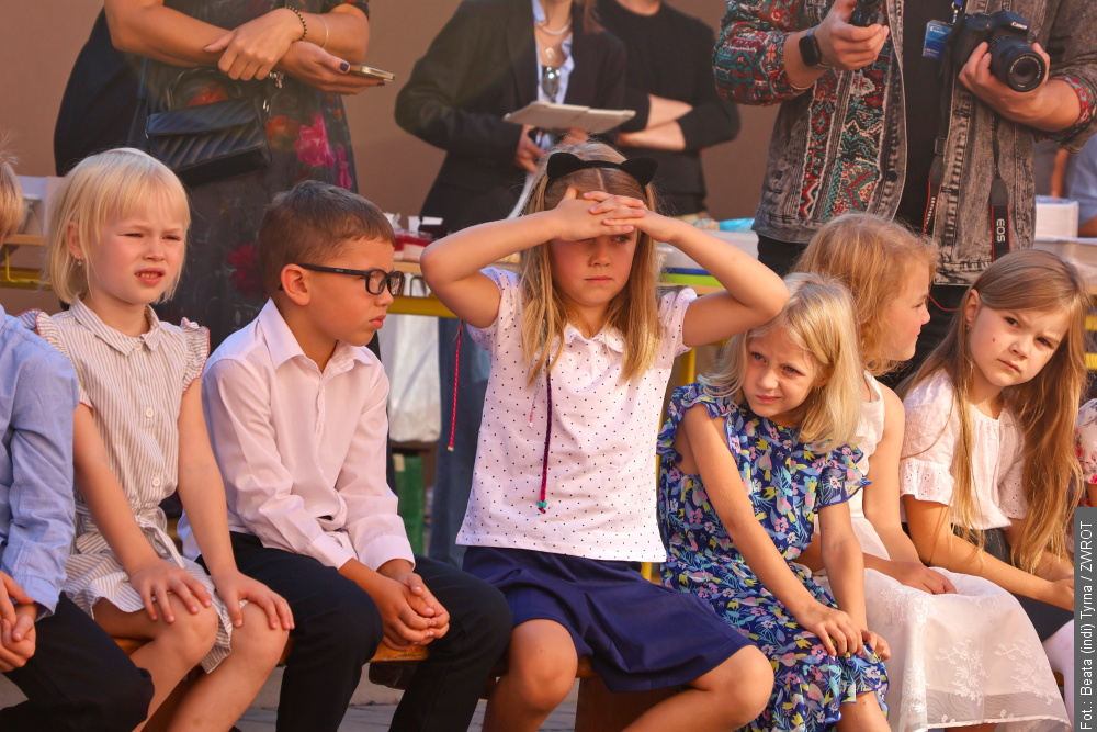 — Od dziś jesteście pełnoprawnymi uczniami. Macie już swoje plecaki większe od siebie, kredki ostrzejsze niż miecze i uśmiechy tak szerokie, że cała szkoła od razu wygląda radośniej. Czeka was tu mnóstwo nowych przygód — mówił Marek Grycz, dyrektor szkoły, zwracając się do pierwszoklasistów.