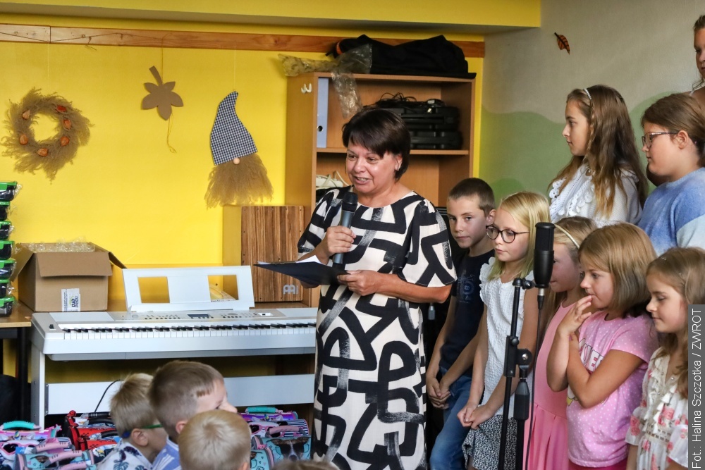Dyrektorka szkoły Urszula Czudek przywitała wszystkich zebranych, kierując szczególne słowa powitania do pierwszoklasistów, dla których był to wyjątkowy dzień w nowym miejscu. Życzyła im odwagi i uśmiechu.