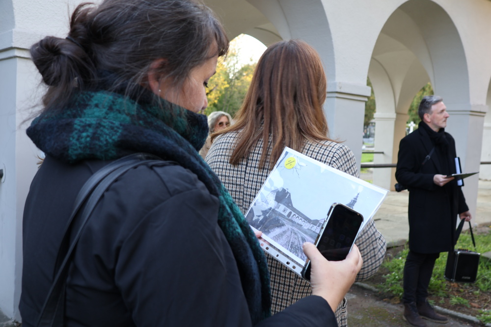 W ramach spotkania odbył się także spacer po cmentarzu, podczas którego uczestnicy poznawali wybrane groby. Przewodniczką była artystka Paula Bubík Szotkowská, która zwracała uwagę na nagrobki o szczególnej wartości artystycznej oraz przypomniała postać Idy Münzberg. Na jej grobie uczestnicy złożyli kwiaty przygotowane przez florystkę Karolinę Kotzur.