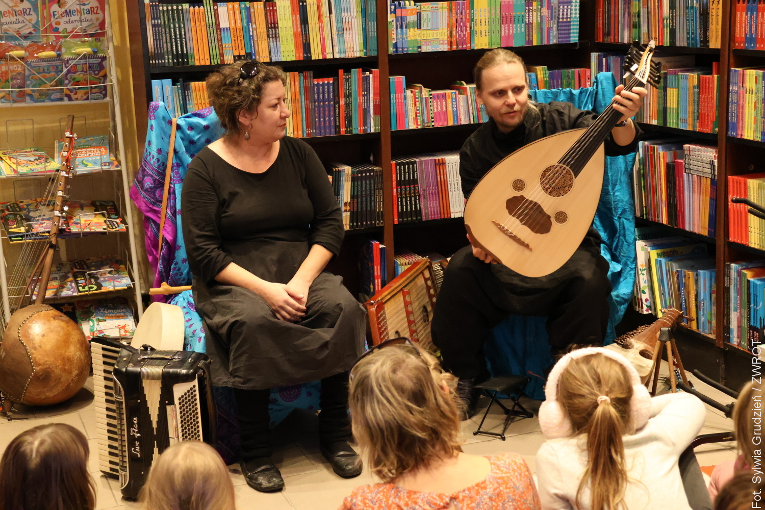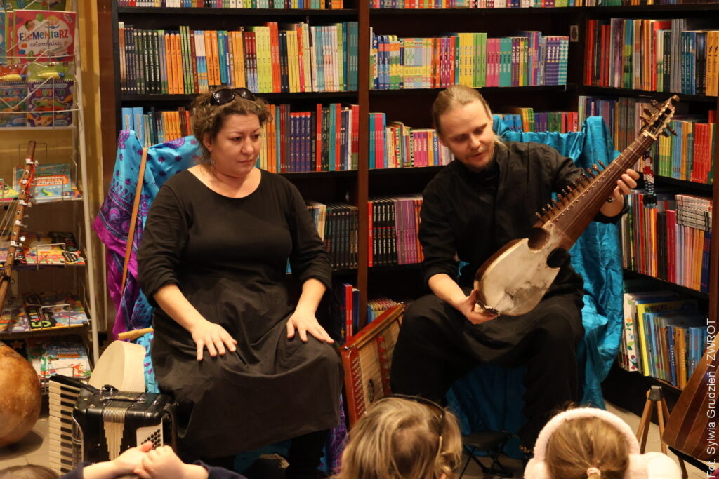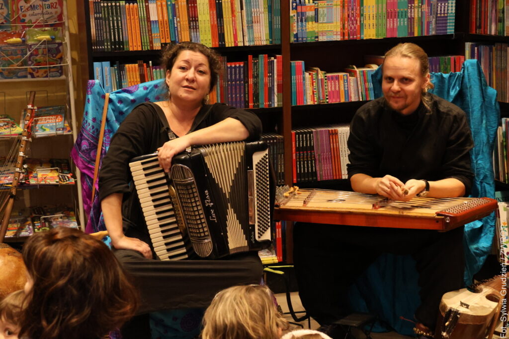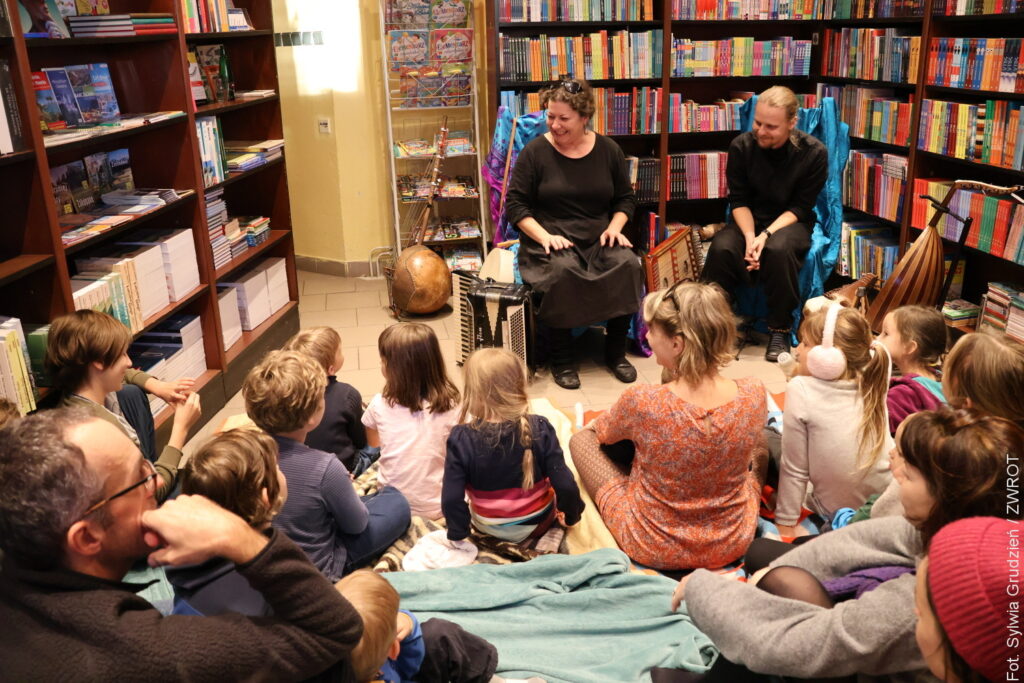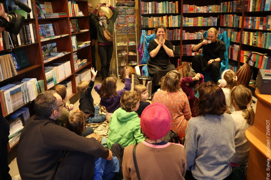 Mali i duzi uczestnicy spektaklu mieli możliwość nie tylko wysłuchania wspaniale poprowadzonej opowieści, ale też poznania dalekowschodnich instrumentów o wyjątkowym brzmieniu. Niektórzy wyszli z Księgarni u Wirthów z nową książką pod pachą, a wszyscy – ze znajomością nowej piosenki.