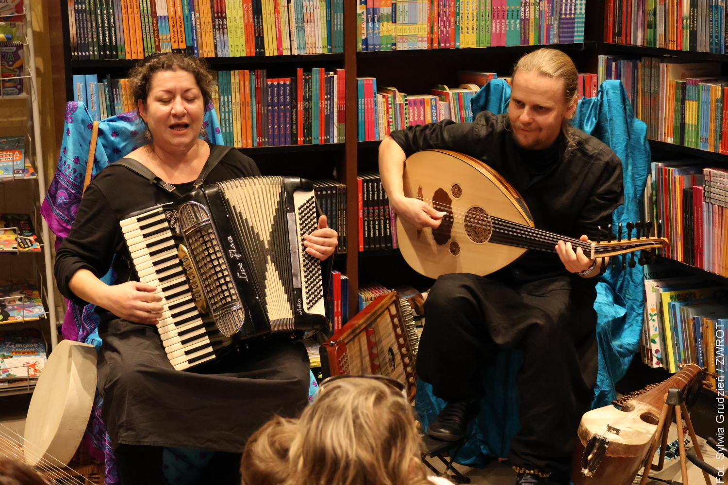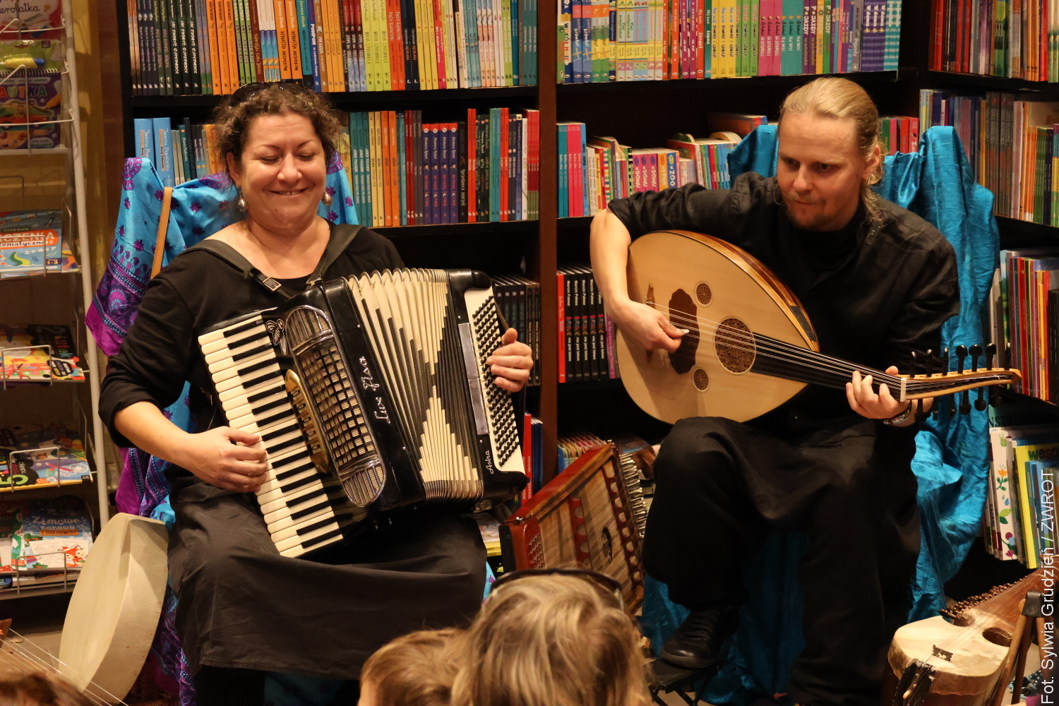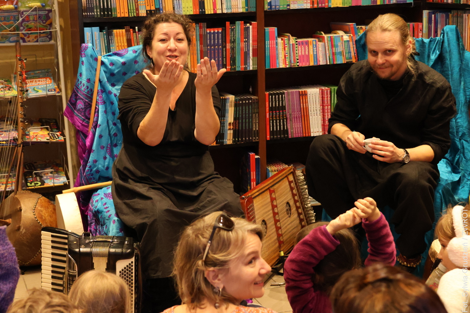 Mali i duzi uczestnicy spektaklu mieli możliwość nie tylko wysłuchania wspaniale poprowadzonej opowieści, ale też poznania dalekowschodnich instrumentów o wyjątkowym brzmieniu. Niektórzy wyszli z Księgarni u Wirthów z nową książką pod pachą, a wszyscy – ze znajomością nowej piosenki.