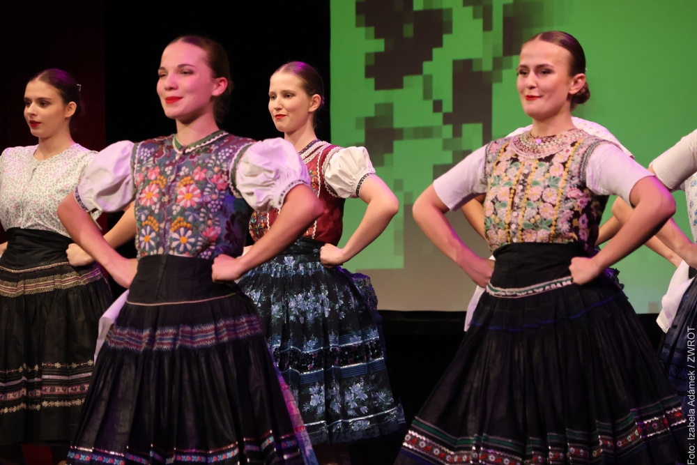 Nazwa „Mozaika folkloru” okazała się niezwykle trafiona, ponieważ cały występ doskonale się ze sobą łączył. Na scenie, obok Zespołu Pieśni i Tańca „Olza”, pojawiły się też inne zespoły: słowacki Folklórný súbor Kopaničiar, czeski Valašský soubor Sedmikvítek oraz Kapela Lipka. Każda część programu miała w sobie coś wyjątkowego, co przyciągało moją uwagę, sprawiając, że śledziłam występ z pełnym zainteresowaniem. Utwory i tańce były różnorodne, ciekawe i wprowadzały nowe emocje, tworząc świetną całość.