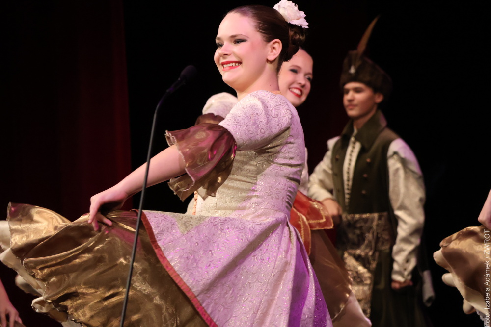 W momencie, gdy scena wypełniła się muzyką, a na niej pojawił się Zespół Pieśni i Tańca „Olza” w polonezie, od razu poczułam, że koncert mnie wciąga. Z zainteresowaniem i zachwytem śledziłam każdą melodię i każdy krok, często uśmiechając się, a także przeżywając emocje towarzyszące każdej piosence i kolejnym tańcom.