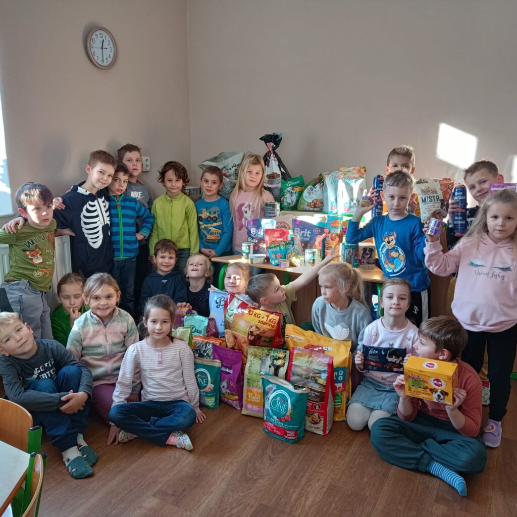 Do działań charytatywnych włączyła się również szkolna świetlica, organizując zbiórkę karmy dla schroniska dla bezdomnych zwierząt w Trzyńcu. Akcja spotkała się z ogromnym odzewem ze strony uczniów i rodziców, którym należą się szczególne podziękowania – nie tylko za dary, ale także za inspirowanie dzieci do okazywania empatii i troski o słabszych.