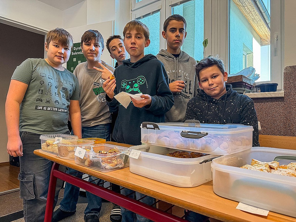 Aby zebrać środki na zakup prezentów, zorganizowano bufetowy dzień. Każda klasa przygotowała własne „swaczynki” – domowe wypieki i przekąski, które sprzedawano podczas przerw. Co szczególnie ważne, całą akcję uczniowie zaplanowali i przeprowadzili samodzielnie: od ustaleń klasowych, przez sprzedaż, aż po wspólny wybór upominków. Gotowe paczki trafiły następnie do punktu zbiórki w Trzyńcu.