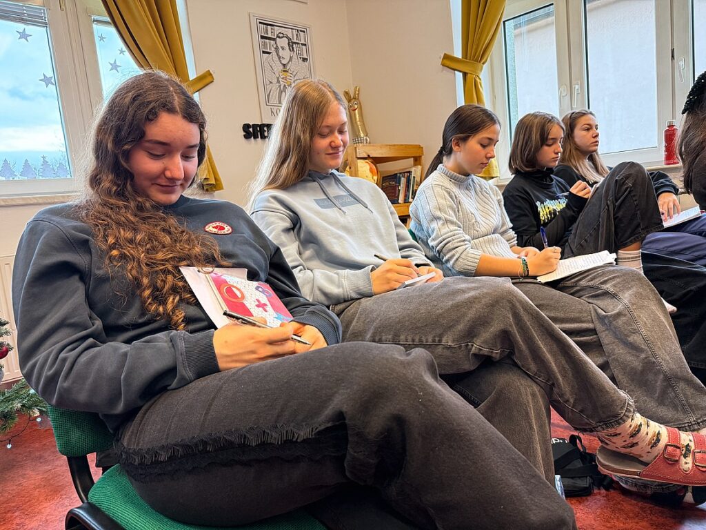 Projektowy dzień był częścią szerszego programu grudniowych spotkań. Uczniowie wysłuchali prelekcji Tiffany Sajdok, która opowiadała o swoich doświadczeniach ze studiów w Stanach Zjednoczonych, pokazując, jak ważna jest odwaga w sięganiu po marzenia i otwartość na inne kultury.
