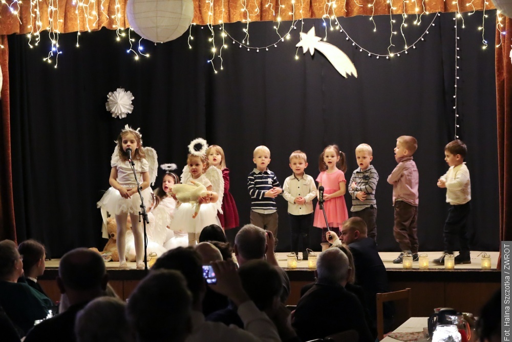 Program otworzył występ dzieci z polskiego przedszkola w Nieborach, które zaprezentowały jasełka. Warto podkreślić, że do przedszkola uczęszczają obecnie głównie młodsze dzieci. Przygotowanie przedstawienia w takiej grupie wiekowej stanowiło dla nauczycielek spore wyzwanie. Jednak trzeba podkreślić, że dzieci stworzyły na scenie piękny świąteczny klimat i zachwyciły swoich najbliższych, którzy zasiedli na widowni.