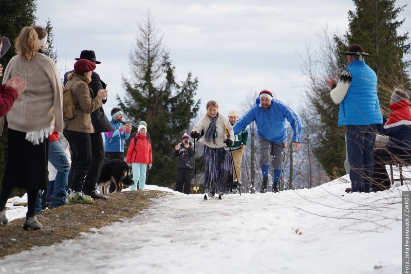 W Biegu brała udział po raz pierwszy. Miała na sobie stylowy strój – zapaskę, modrzyniec, gruby sweter i czapkę uszatkę. – Sweter dał mi tata, a strój góralski mam, bo tańczę w zespole Małe Oldrzychowice – powiedziała Ala Szpyrc.