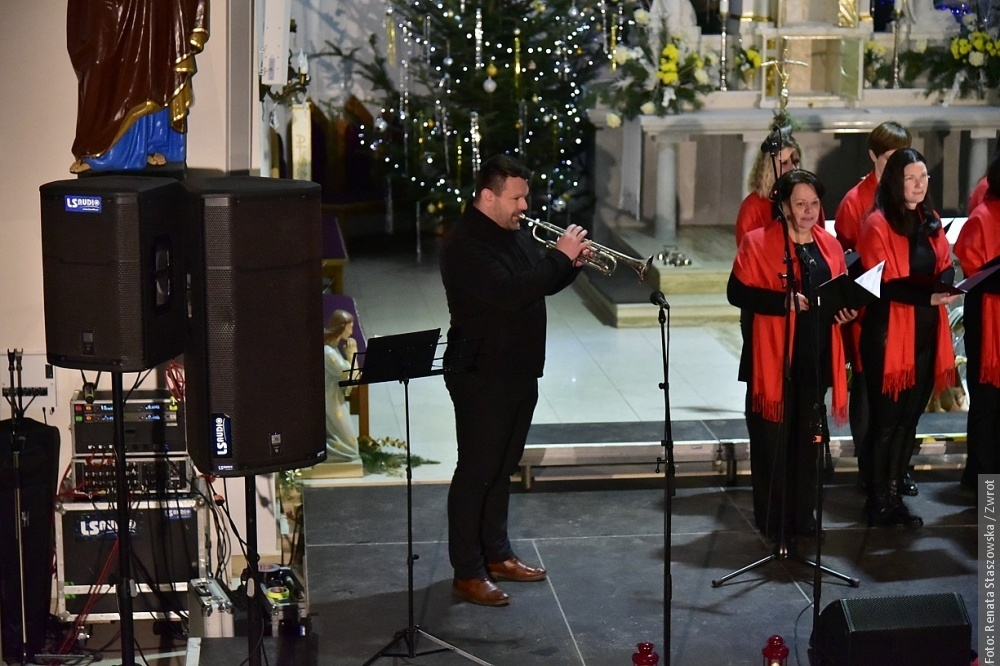 Wzruszającym momentem był wspólny występ Chóru Nauczycieli i kapelana Jana Davida, który zagrał na trąbce. Razem wykonali kolędę Cicha noc, tworząc kameralną i bardzo emocjonalną chwilę.