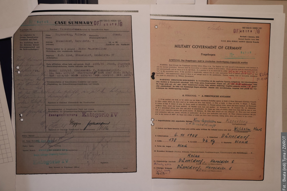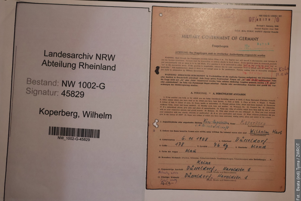Materiały są z Archiwum Państwowego Nadrenii i Westfalii. Tam jest cały zbiór materiałów. Ja je wszystkie też mam wydrukowane, w razie gdyby kiedyś dostęp zabrano, to ja mam wszystkie te zeznania świadków. Mam też zeznania Koperberga i decyzje komisji denazyfikacyjnej.