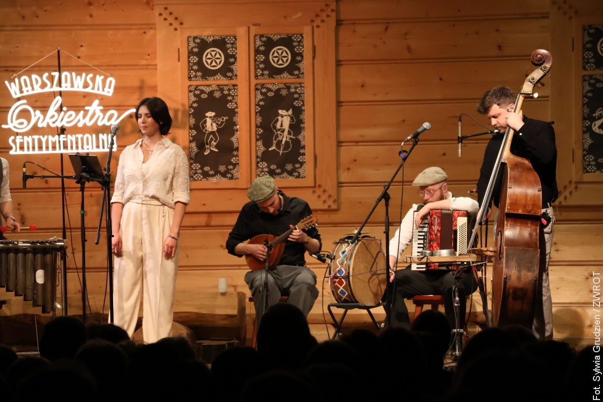 Warszawska Orkiestra Sentymentalna zagrała w siedmioosobowym składzie. Wokalnie poprowadziła ją Gabriela Mościcka, ujmując publiczność lirycznym głosem, który momentami przybierał surową, otwartą barwę nawiązującą do estetyki śpiewu białego. Rytmiczny fundament orkiestry tworzyli Mateusz Kowalski na barabanie i Łukasz Owczynnikow na kontrabasie, natomiast dodatkowy koloryt wprowadzili Jakub Fedak na wibrafonie oraz Krzysztof Baranowski na mandolinie. Energii dodała sekcja dęta: Lena Nowak na klarnecie i Kazimierz Nitkiewicz na trąbce.