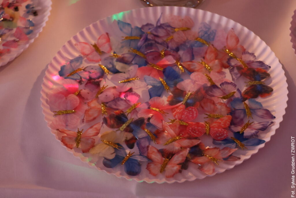 Sala została przystrojona z dbałością o każdy detal: stoły zdobiły piegi — symboliczne „łapacze dobrych wspomnień”, a kotyliony przybrały fantazyjne kształty motyli. Prowadzący wieczór, Marek Szlaur, wraz z częścią obsługi i gości pojawił się w kostiumach inspirowanych Akademią, co dodatkowo podkreśliło motyw przewodni imprezy.