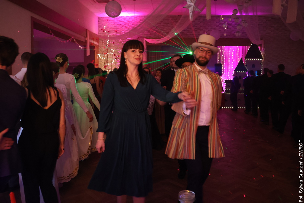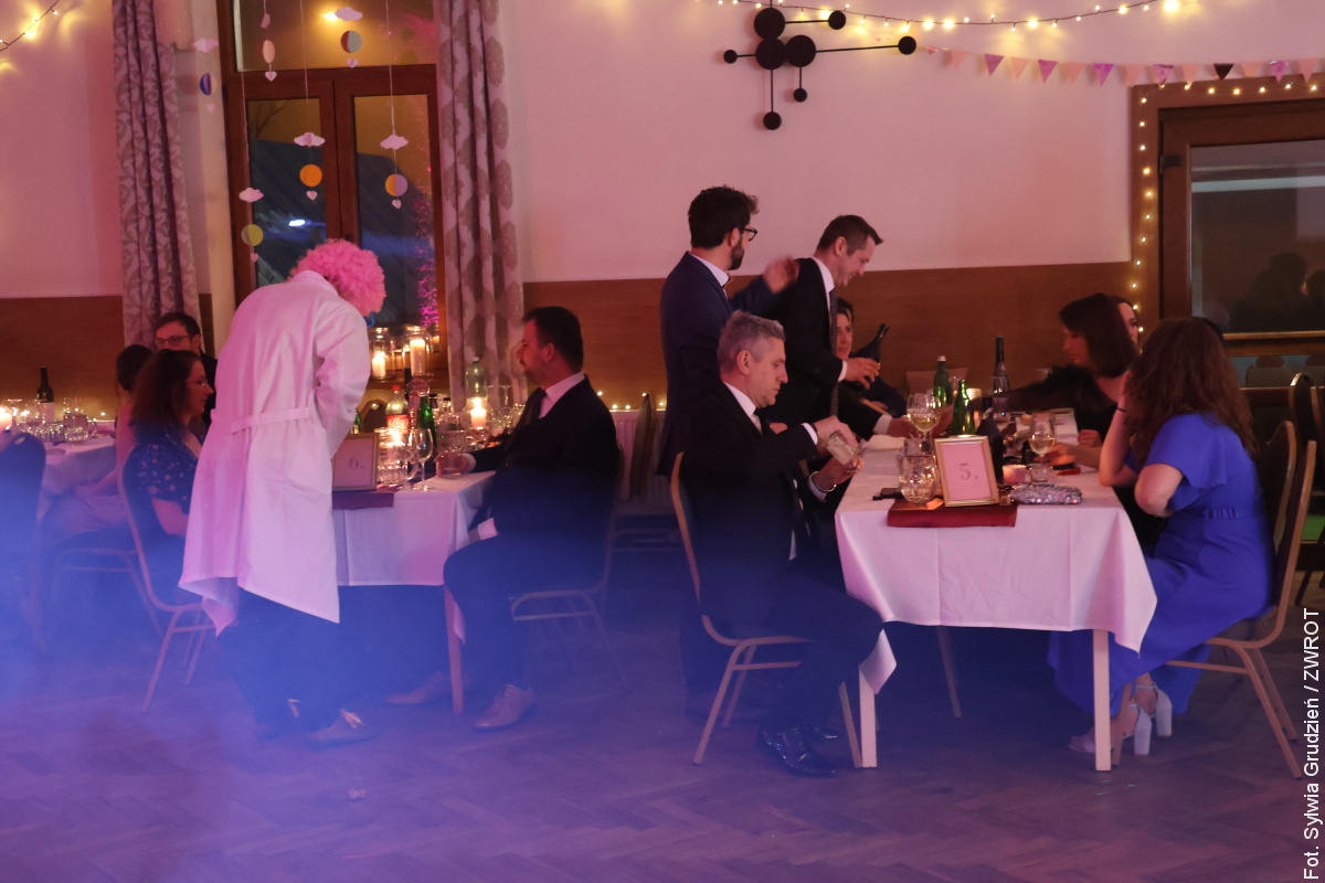 Sala została przystrojona z dbałością o każdy detal: stoły zdobiły piegi — symboliczne „łapacze dobrych wspomnień”, a kotyliony przybrały fantazyjne kształty motyli. Prowadzący wieczór, Marek Szlaur, wraz z częścią obsługi i gości pojawił się w kostiumach inspirowanych Akademią, co dodatkowo podkreśliło motyw przewodni imprezy.