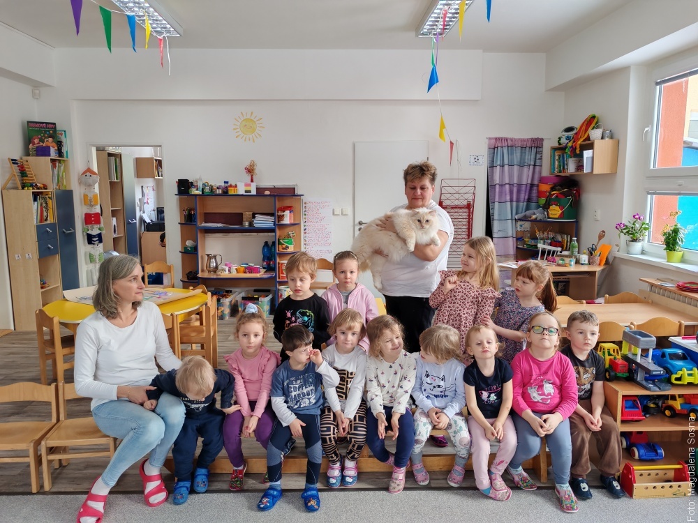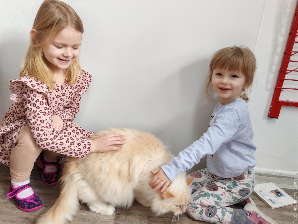 Oprócz Igrzysk Zimowych w czwartek przedszkole obchodziło Dzień Kota. Podczas zajęć dzieci wykonywały prace plastyczne, czytały książeczki i poznawały ciekawostki o tym drapieżniku. Nie zabrakło wspólnych zabaw, gier i piosenek o tematyce kociej. Punktem kulminacyjnym była wizyta kota Danyego rasy Ragdoll, który zachwycił przedszkolaków.