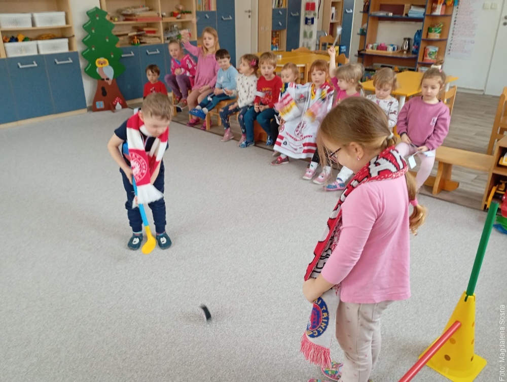 Drugi dzień przedszkolaki przeniosły się na taflę lodową. Dzieci mogły obejrzeć pokazy par tanecznych sportowych oraz występy solistów. Zmagania zakończyły się meczem hokeja mieszanego, a po podliczeniu punktów zostały wręczone medale.