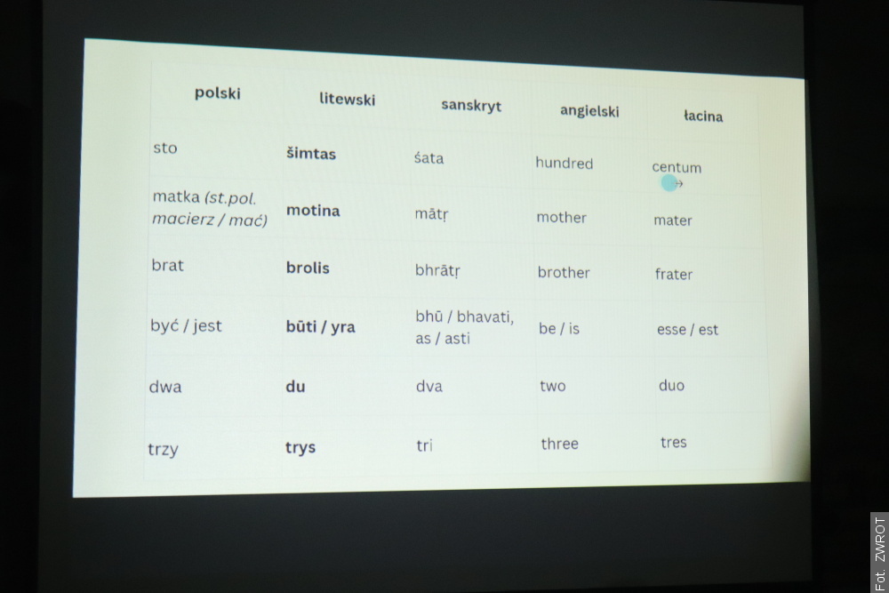 Podczas wykładu Chruścicki rozpoczął opowieść od najdawniejszych korzeni języka polskiego, czyli języka praindoeuropejskiego, który istniał kilka tysięcy lat temu. – To język, z którego wywodzą się praktycznie wszystkie języki Europy, a także wiele języków Azji, na przykład w Indiach – wyjaśnia.
