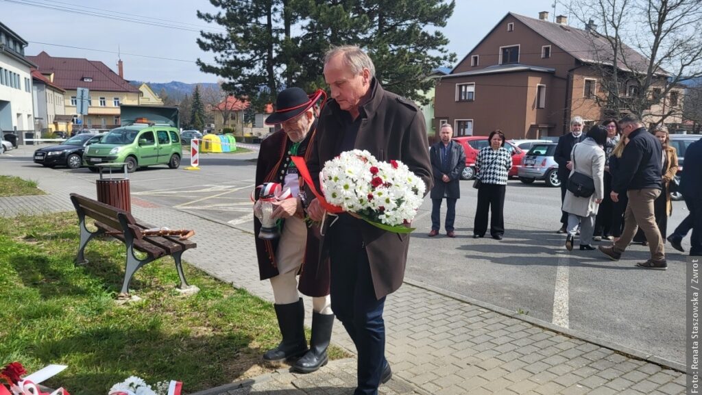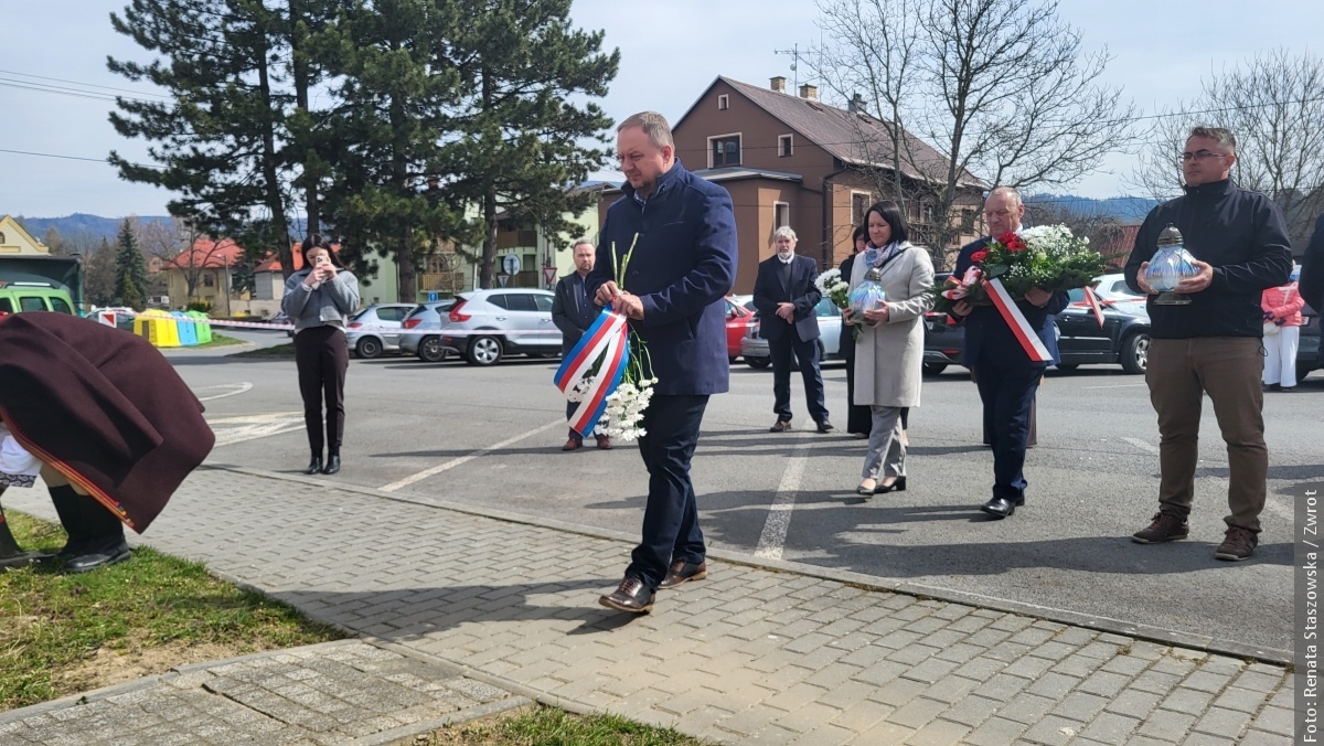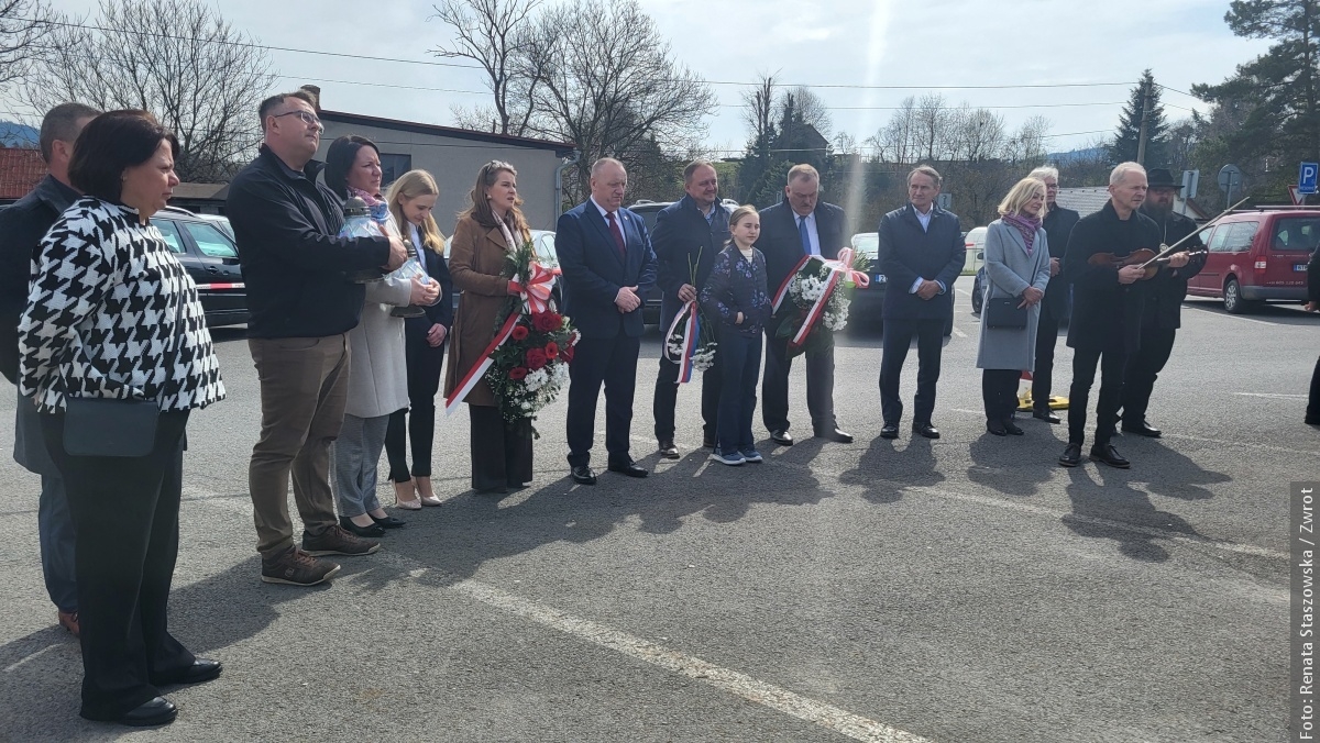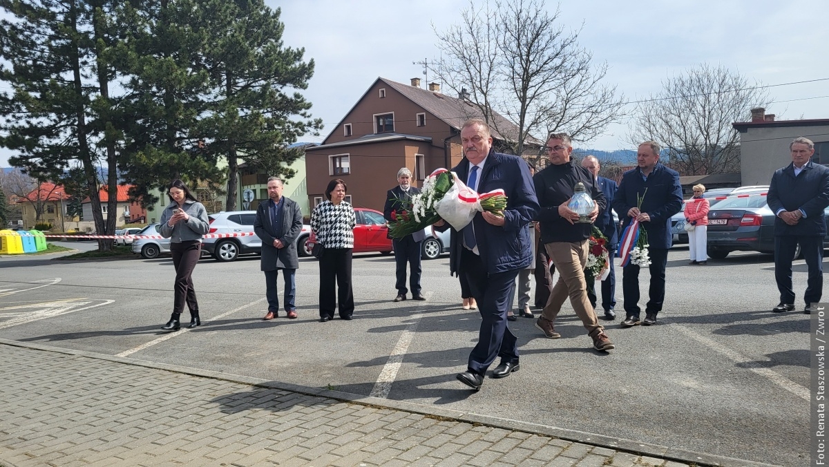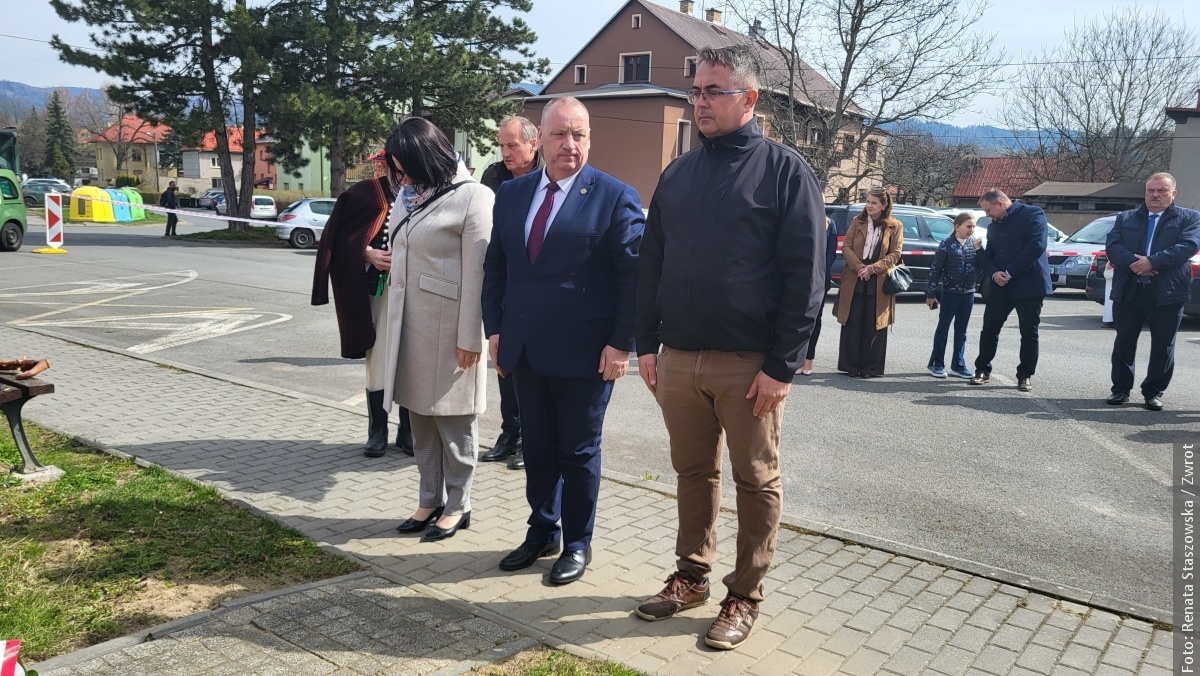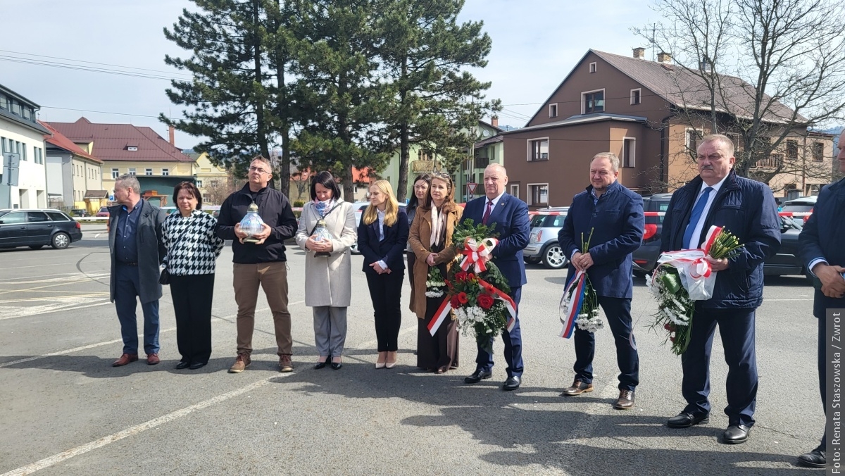 JABŁONKÓW / W niedzielę 12 kwietnia 2026 roku przy tablicy pamiątkowej na terenie dawnego cmentarza żydowskiego w Jabłonkowie zgromadzili się mieszkańcy oraz goście, by uczcić pamięć 12 osób zamordowanych 13 kwietnia 1945 roku przez niemieckich okupantów. Ofiary – młodzi ludzie, wśród nich ówczesny wójt Istebnej Antoni Juroszek oraz jego synowie – zginęły dlatego, że były Polakami i kierowały się patriotyzmem.