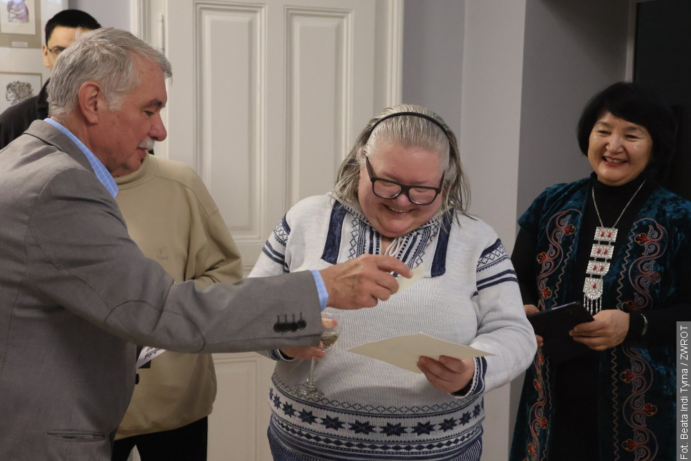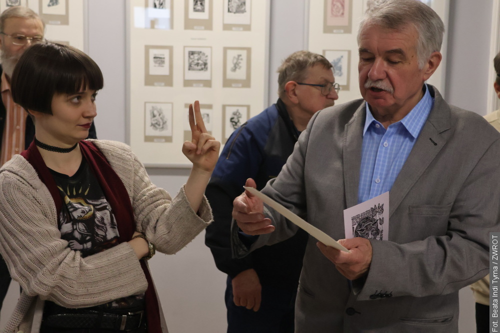 — Bardzo wam dziękuję, bo wy dzisiaj swój czas, czyli to, co najcenniejsze, przeznaczyliście na to, żeby przyjść, obejrzeć tę wystawę i spotkać się ze mną — mówiła artystka. Zwróciła uwagę, że ekslibris pozostaje dziedziną niszową, a przez to — elitarną.